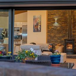 The open-plan family living area is a masterpiece of design, offering a massive, chef-inspired kitchen complete with a butler's pantry, premium stainless steel appliances, and expansive benchtops. It's the ultimate space for indulging your culinary passions and entertaining in grand style. The adjoining family zone, air-conditioned for comfort, features a cozy wood-burning fire and striking stone surrounds, creating the perfect atmosphere for both relaxation and celebration.
