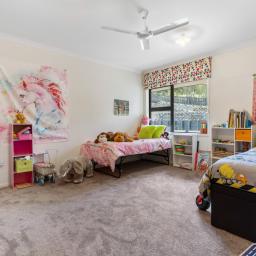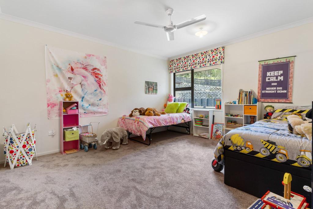 The luxurious master suite is a sanctuary at the end of the hall, offering an ultra-large bedroom, an oversized walk-in robe, and a lavish ensuite with a dual vanity and sliding doors that open onto a private deck. Spacious secondary bedrooms with built-in robes share a well-appointed family bathroom, ensuring comfort and privacy for everyone. The brilliantly designed laundry opens into the garage and another patio, while additional storage and a large loft area provide room for hobbies or extra living space.