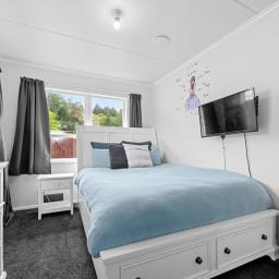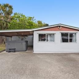 Accommodation includes two double bedrooms and one single inside, plus a versatile outdoor rumpus — ideal as a teen space, hobby room, or additional bedroom as used by the current owners. Fully insulated and equipped with its own heat pump and carport, it’s a superb bonus for families needing extra space. A stylish modern bathroom completes the picture beautifully.