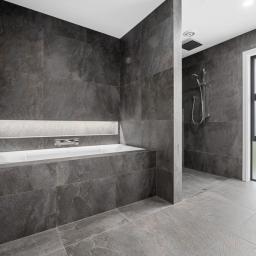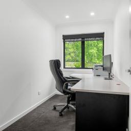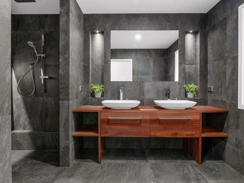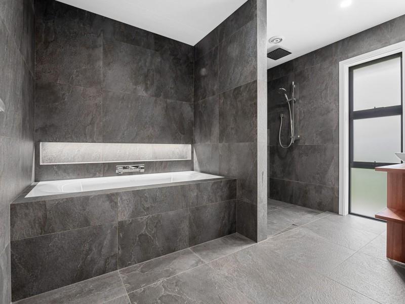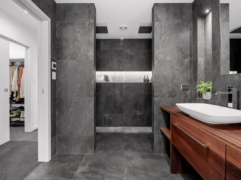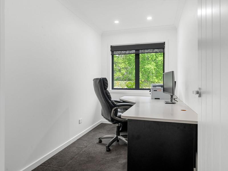 Accommodation includes five spacious bedrooms, with the master suite enjoying a generous walk-in wardrobe and a luxurious ensuite showcasing twin rain showers and contemporary finishes. Two further bathrooms, a dedicated office, and a full laundry complete the thoughtful layout.