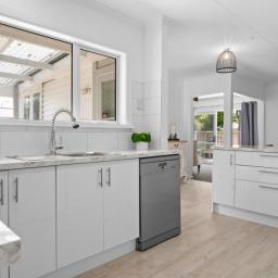 Behind the welcoming façade, you’ll find a thoughtfully designed floor plan that offers both connection and privacy. The open-plan kitchen, dining, and living area forms the heart of the home, flowing effortlessly to a sunny deck and garden where entertaining and family time come naturally. The modern kitchen, with excellent storage and workspace, makes everyday life easy, while the adjoining living areas provide space for everyone to relax and unwind.