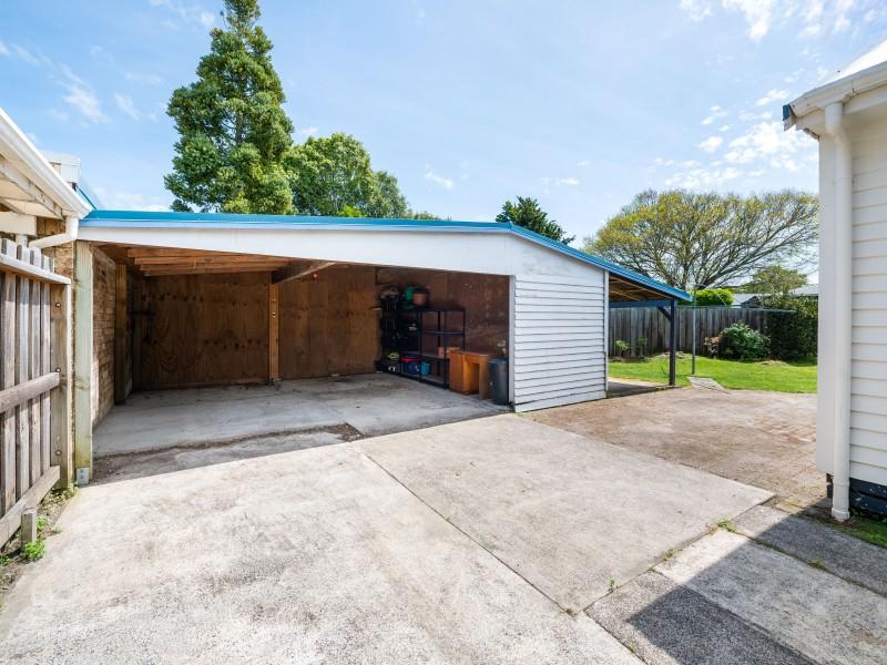 Outdoors, the flat, fully fenced section offers plenty of room for kids and pets to play safely, with mature trees adding privacy and a relaxed green outlook. A double carport provides practical covered parking and easy access to the home.