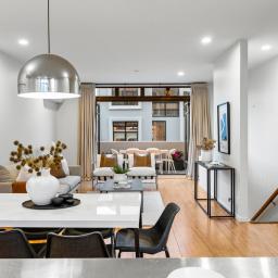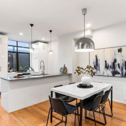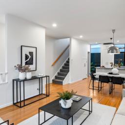Spread across three levels, the home offers a wonderful sense of space and openness. The entire middle floor is dedicated to living and entertaining, featuring a modern kitchen that flows seamlessly into the dining and living areas. Polished timber floors and high ceilings enhance the light, airy feel, which extends onto a sunny, northwest-facing balcony - ideal for an evening drink or hosting friends. Upstairs, you'll find a peaceful retreat with two generous bedrooms, including the spacious master with a striking vaulted ceiling, plus a well-appointed bathroom.