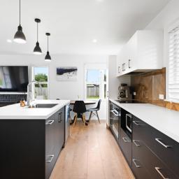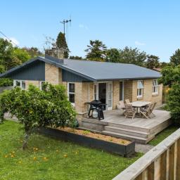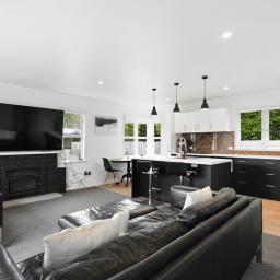 Your open plan living area is kept comfortable all year-round by a heat pump and features at its hub a stunning kitchen with ample bench space, modern appliances, along with a separate laundry/scullery for convenience. You have three generous bedrooms which share the upgraded bathroom with tub for a soothing soak. Enjoy effortless indoor-outdoor flow through the French doors to the oversized deck, ideal for a morning coffee, summer BBQs and entertaining.