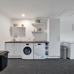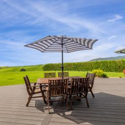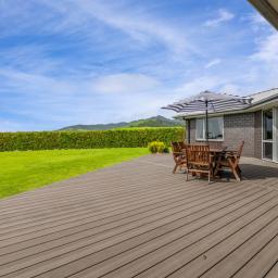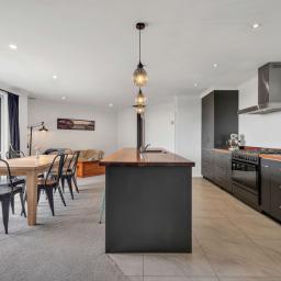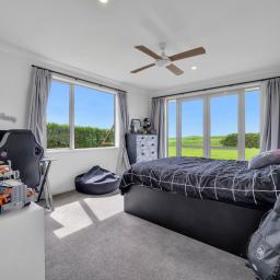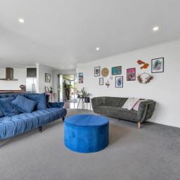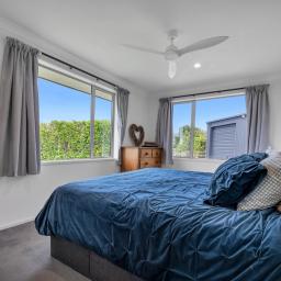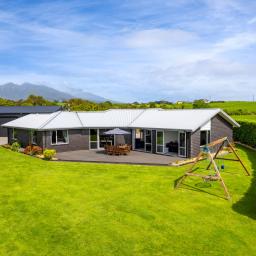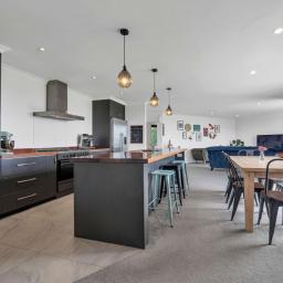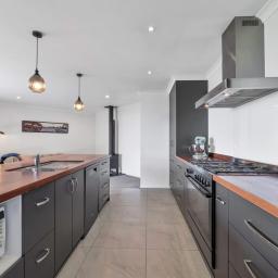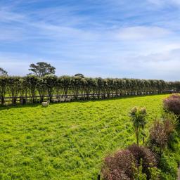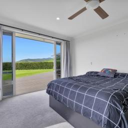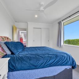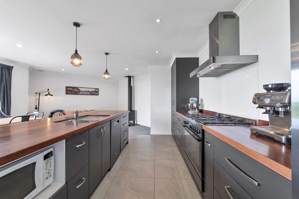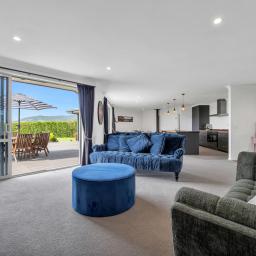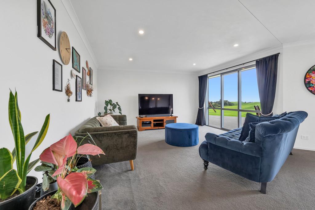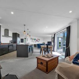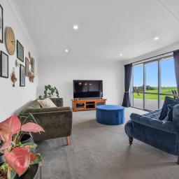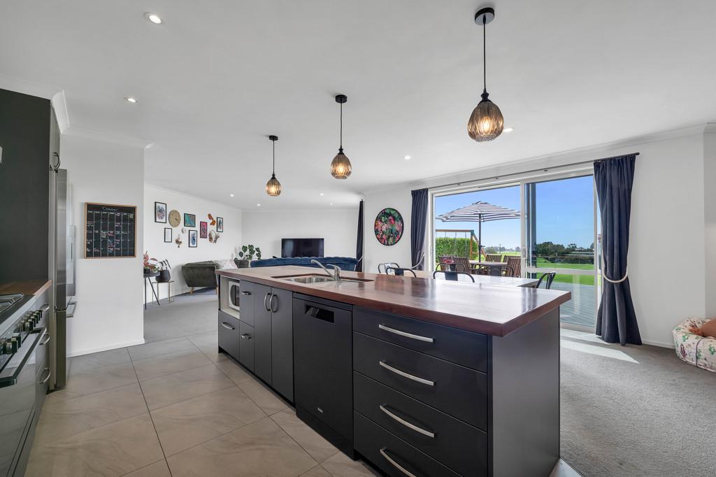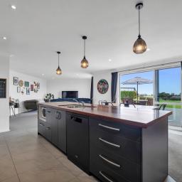 At the heart of the home, a designer kitchen anchors the spacious open-plan living zone, complemented by two generous lounges that cater effortlessly to family life and entertaining. Sliding doors open out to an expansive sun-drenched deck, ideal for summer gatherings while soaking in the sea views and surrounding rural serenity.