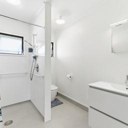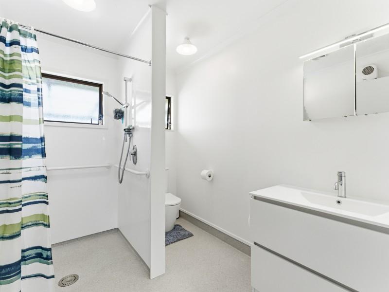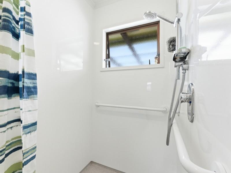Step inside to find new carpets throughout, creating a fresh and inviting feel underfoot. The home is warmed year round by a heat pump, providing comfort and energy efficiency in every season. The bathroom has been thoughtfully designed with a modern wet floor, combining style, accessibility, and easy maintenance, perfectly complementing the homes contemporary upgrade.
