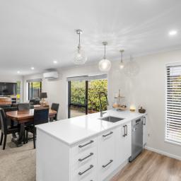The heart of the home is the well appointed kitchen, complete with an induction hob, great bench space, and plenty of storage, perfect for everyday living or entertaining friends and family. Open-plan living flows easily, giving you a bright and comfortable space to relax or host.