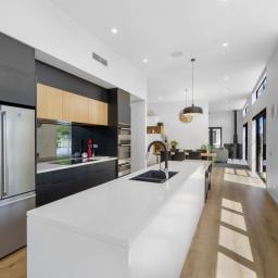 At the heart of the home lies a sleek, modern kitchen, a dream for entertainers and home chefs alike. Enjoy a large induction cooktop, one and a half ovens, built-in oven/microwave combo, and an impressively sized walk-in pantry - perfect for growing families or self-proclaimed culinary enthusiasts.