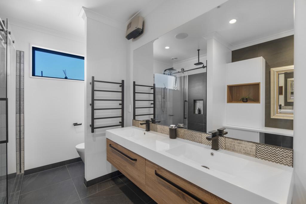 Four generous bedrooms provide ample space for family or guests, while the beautifully appointed bathrooms feature large, tiled showers and under-tile heating. The master suite is blessed with views, sun, generous walk in robe, fabulous ensuite, and dedicated makeup station.