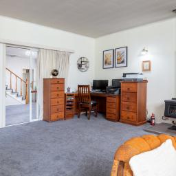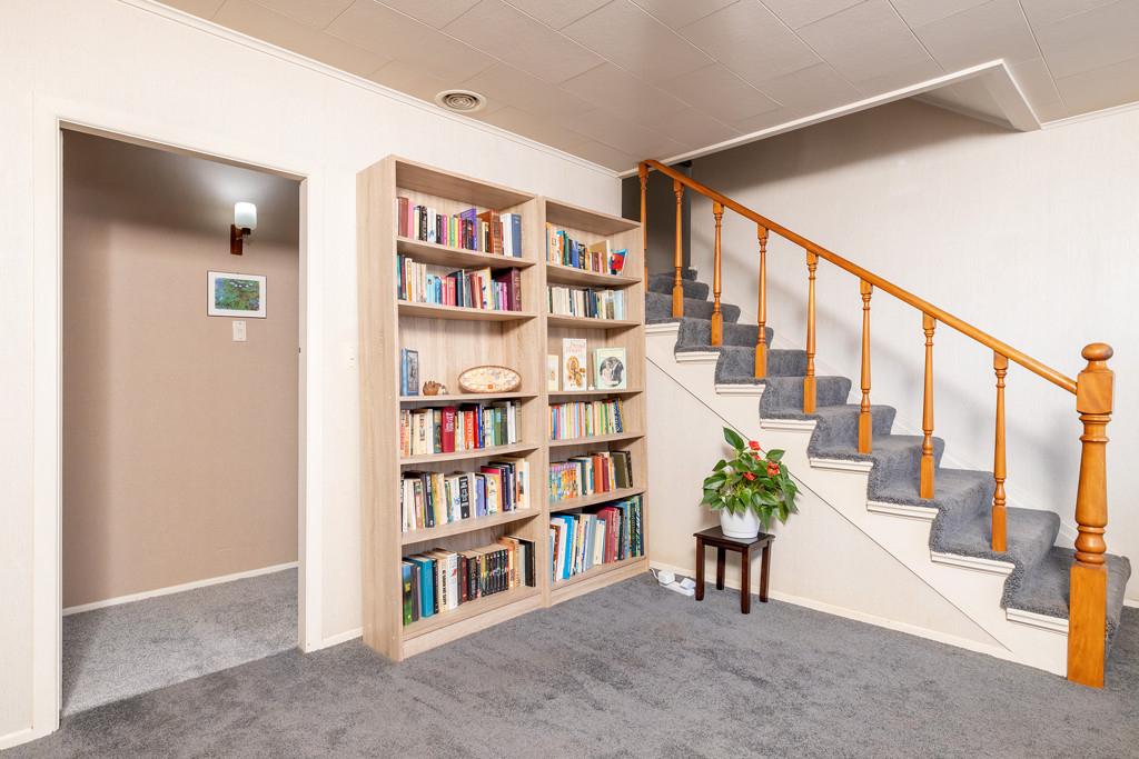 The sheltered front porch welcomes you into a very spacious lounge, which the owner has set up for their home business. This area flows seamlessly into a library/study area and two of the four bedrooms. flows seamlessly into a library/study area and two of the four bedrooms. The lower level features an updated laundry and bathroom, a large games room/additional living area and the the fourth bedroom, with convenient access to the garden, double garaging, and additional parking. Did we mention the wine cellar? With a few additions, this lower floor could be readily converted into a self-contained flat for the extended family or additional income - Perfect for multi-generational living requirements.