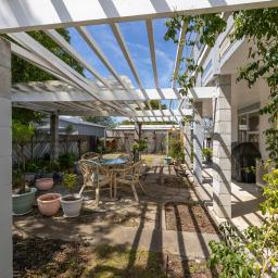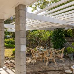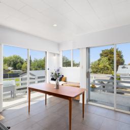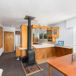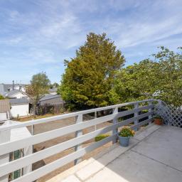 The elevated, north-facing kitchen and dining areas are bathed in natural light, extending onto a wrap-around deck-perfect for enjoying your morning coffee while keeping an eye on the children. Exterior stairs provide direct access to the garden below which blooms with year-round interest.