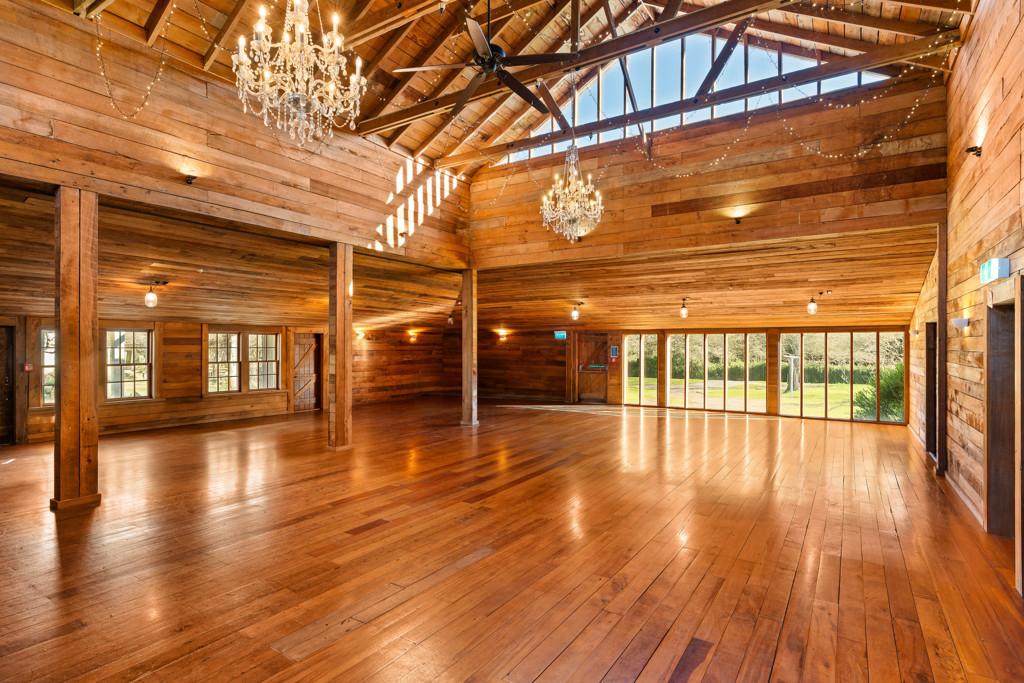 The centerpiece is a breathtaking 1860's barn - one of New Zealand's finest restorations. Fully insulated and heated, it features soaring sarked ceilings, exposed beams, chandeliers, and sweeping views of farmland and native bush. With capacity for 200 guests, the barn includes a commercial kitchen, wheelchair access and paved outdoor zones - all set in manicured, park like grounds. The complete privacy of the setting ensures uninterrupted enjoyment of the venue and surrounds.