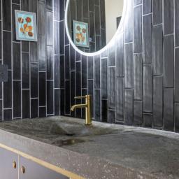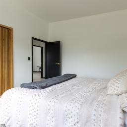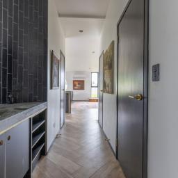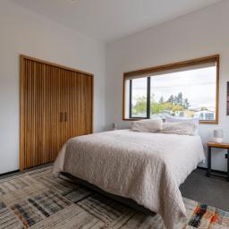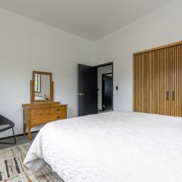 The stylish and sleek design continues throughout the home with a large separate shower tiled from floor to ceiling. Next door is the WC and bathroom vanity while there is a practical second vanity in the hallway which is a talking point for the property. Then there is the three spacious bedrooms all with large double wardrobes with Rimu slat doors (Sourced from the Historic Lake House Tavern).