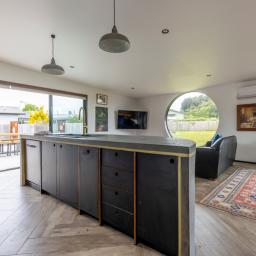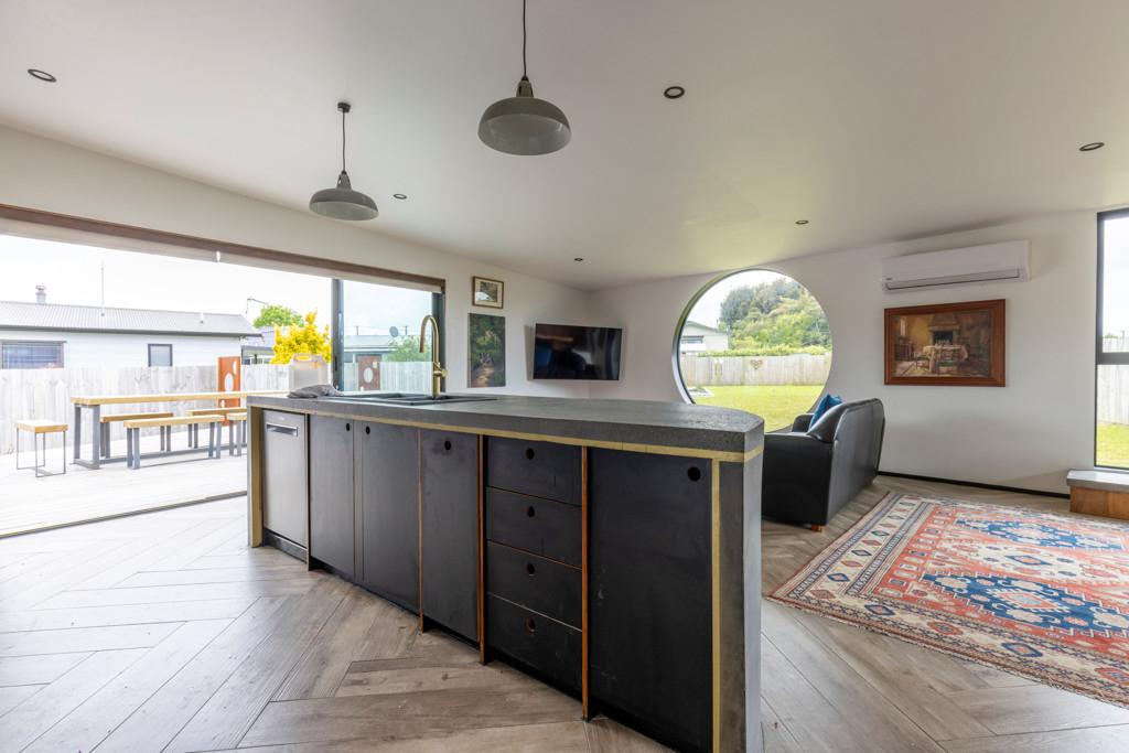 This property is special with its "Waka" inspired designs from the kitchen benchtop to the huge North facing living area custom made windows. Indoor/outdoor flow is guaranteed with access to a large deck from the living area.