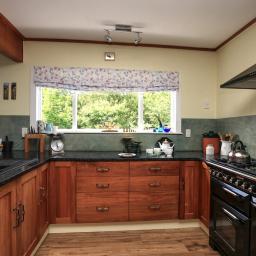 At its heart is a superb open-plan kitchen-diner, a cook's dream with hand-crafted wood cabinetry, granite benches, Falcon range cooker, integral dishwasher, and generous walk-in scullery, plus French doors opening onto a sheltered deck - ideal for summer BBQ's.