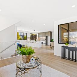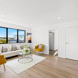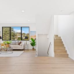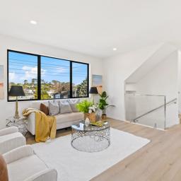 Top Level: A family haven with three generous bedrooms, including a master suite with walk-in wardrobe and luxurious tiled ensuite. A second living area provides a retreat for children or teens.