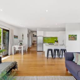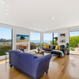 The open plan living with its easy indoor/outdoor flow lends itself well to great family times after a day out on the water: a barbeque on the deck, a tasty seafood meal with friends or board games around the fire in the cooler months.