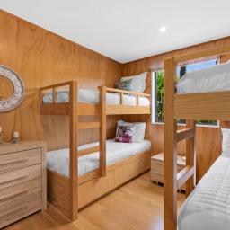 For holidays with extended family, there's plenty of room for everyone - with two double bedrooms and a bunk room for the extras. Two bathrooms and gas hot water.