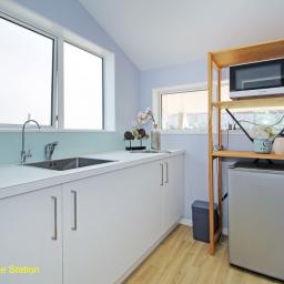 Solid in construction and single-level in form, the main home carries a modernised edge. Timber floors link the kitchen, dining, and living areas, with a log burner, a mixture of double glazing and single plus insulation ensuring comfort remains consistent.