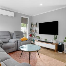 The thoughtful 92m2 (approx.) floorplan allows for relaxed, easy living with spacious bedrooms and a good family-sized jack and jill bathroom. The kitchen and living spaces are airy and open planned, perfect for those who enjoy entertaining. The living opens out onto your own private backyard, creating a home that can be enjoyed all year round. The comfortable nature of this property continues thanks to the double-glazing and a heat-pump system. Other notable highlights include the carpeted internal access garage with laundry and attic storage, gas cooktop, stone bench top and master suite, which enjoys access to the bathroom.