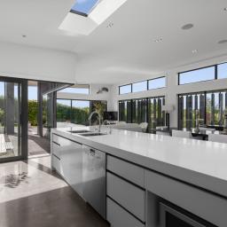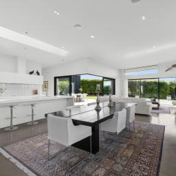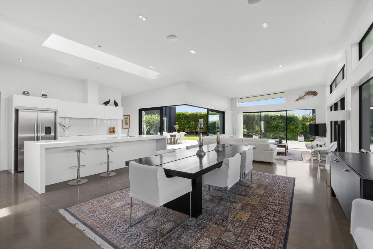 The expansive open-plan kitchen, dining, and living area is a true highlight, complete with a well-appointed scullery and seamless flow to a sheltered courtyard — ideal for relaxed morning coffees or evening drinks with friends.