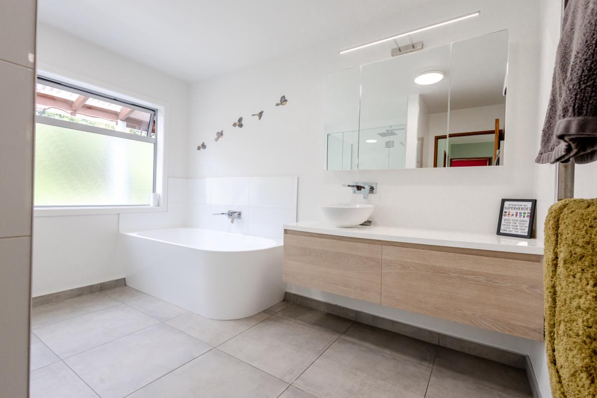 - Upgraded modern kitchen and bathrooms, sleek tiled shower