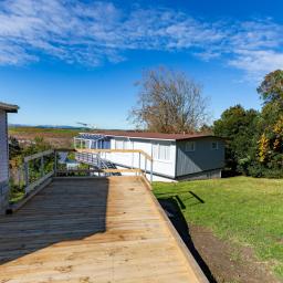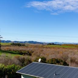 The French doors open out onto the deck with lovely views over the farmland.