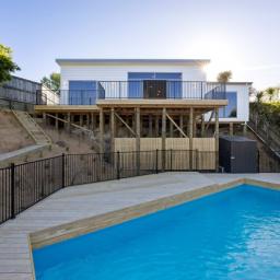 Step inside and discover a thoughtfully designed layout that maximises both space and light. The open-plan living area forms the heart of the home, a warm, welcoming space that flows effortlessly to the deck and overlooks the sparkling in-ground pool. The kitchen is a true showpiece, finished to a superb standard with high-spec fittings and modern styling that will impress the most discerning home cook. Three generous bedrooms provide flexibility for families or professionals, with the master suite featuring its own beautifully appointed ensuite. A second bathroom and separate laundry complete the smart, functional floor plan.