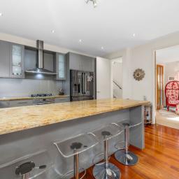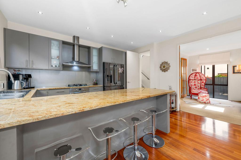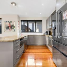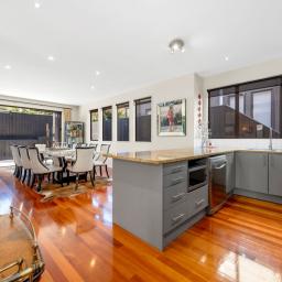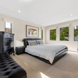 Light filled living spaces and generous proportions across a 246sqm floor area create an inviting atmosphere for daily life and entertaining. At the heart of the home sits a modern kitchen that flows into the open plan dining and living areas, extending out to a sun washed courtyard. It is the perfect setting for relaxed alfresco dining, weekend gatherings, or your morning coffee ritual. A guest powder room completes this level with ease and style.