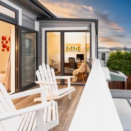 - Three double bedrooms and a single bedroom (ideal as a home office) that capture early or late sun, including a spacious master that opens to a northeast-facing deck with neighbourhood views