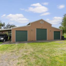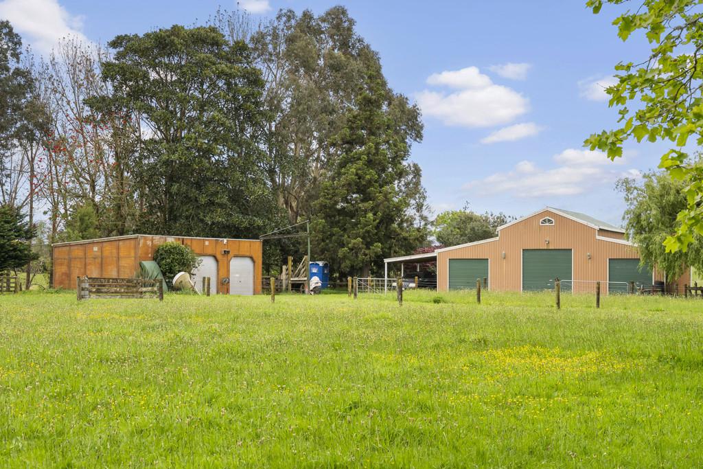 For storage and workshop needs, the property features an impressive 13.9m x 8.8m triple-bay barn-style shed complete with a vehicle hoist, perfect for car enthusiasts, plus an 11.5m x 7.7m trip-bay implement shed with one bay currently utilised as a vehicle spray booth.