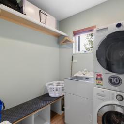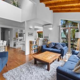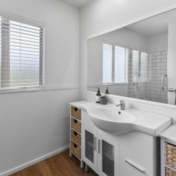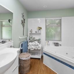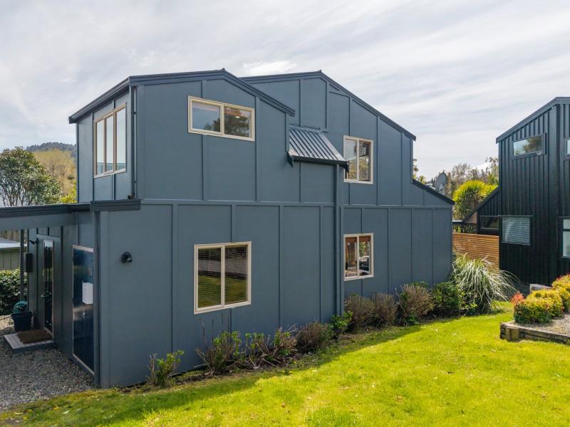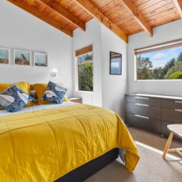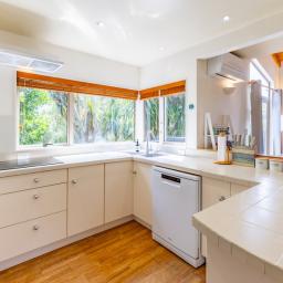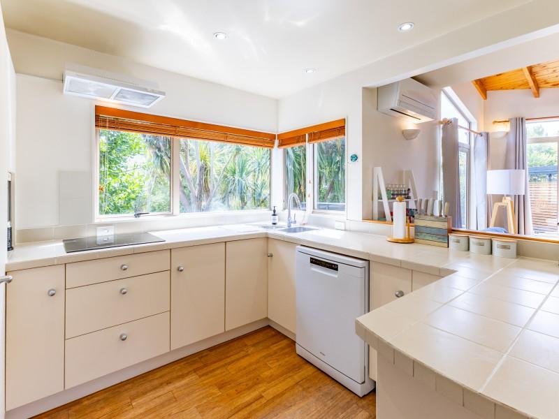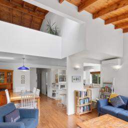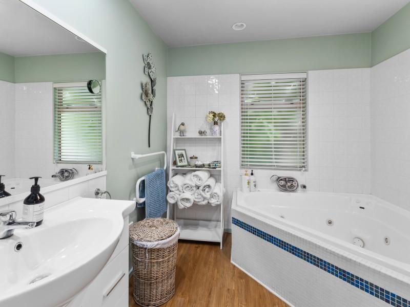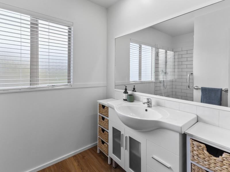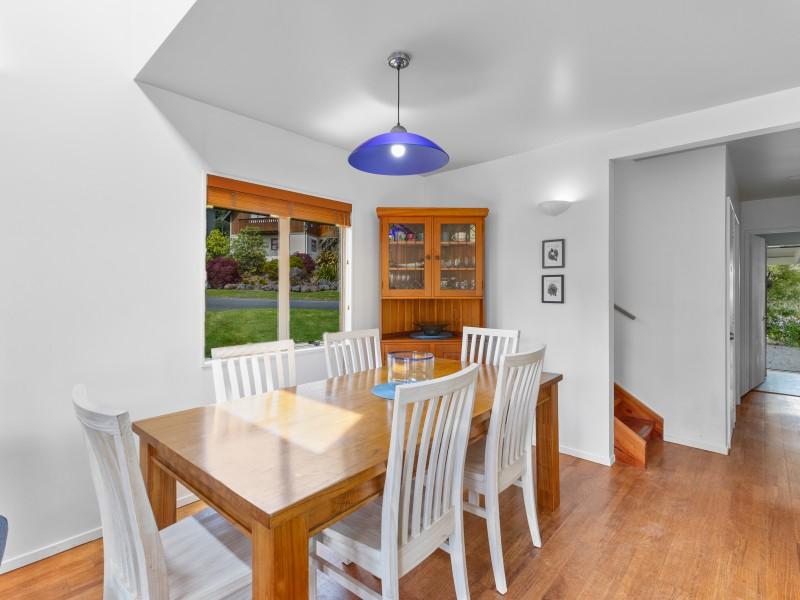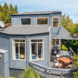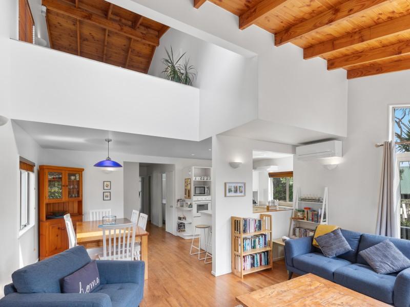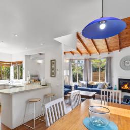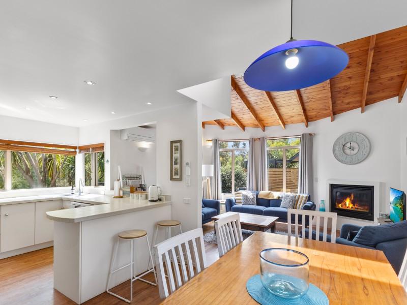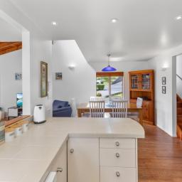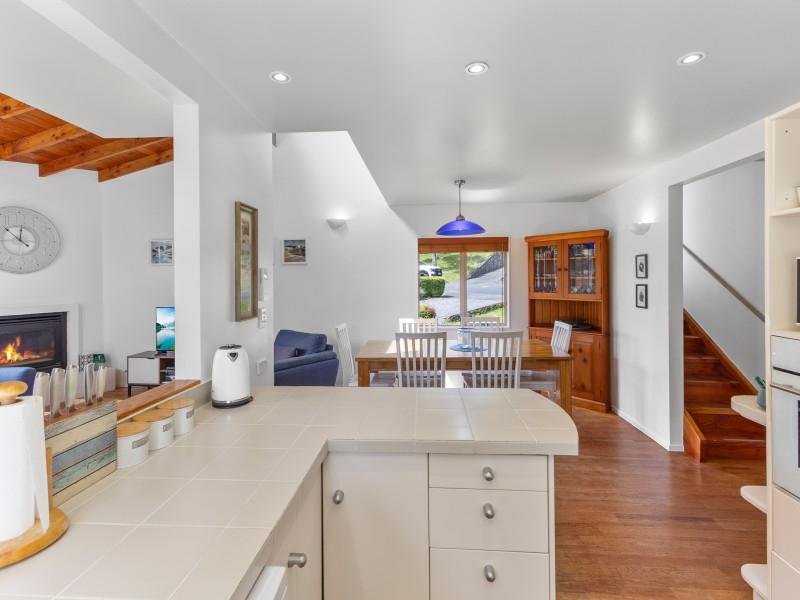 Downstairs houses a separate laundry, separate toilet, spacious bathroom featuring a large corner spa bath and the first of three tastefully decorated double bedrooms with built-in robes, always a bonus. The open plan living area is the best place to relax and enjoy, heated by both a heat pump and a gas fire, with a dedicated dining area and kitchen with all the mod cons. The lounge spills out on to a fabulous deck giving great indoor-outdoor flow and great for getting even closer to nature and alfresco entertaining.