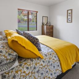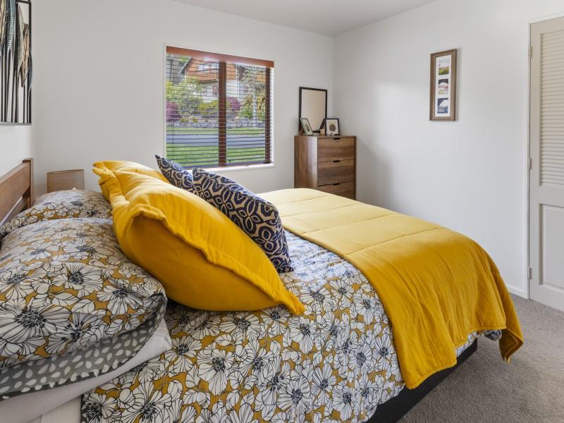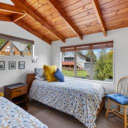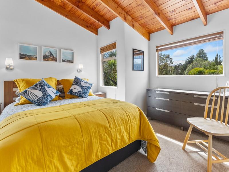 Upstairs to a landing with the best window view in the house and lends itself to so many options. An office with a view, a great space to chill and read a book, perhaps a sofa bed when you have extras come to visit. We also have two more beautiful bedrooms, bathroom number two and another separate toilet. And views of Mt. Ruapehu. This gorgeous property also comes fully furnished with quality chattels. It really is a complete package.