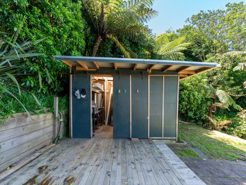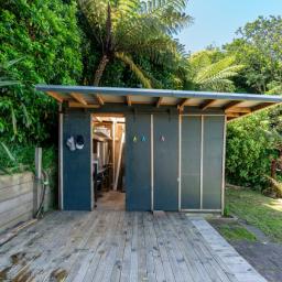 - Secluded rear garden with terraced lawn that steps up from the deck to space for a spa pool and a practical shed that's been used to make home brew using ''locally' sourced hops