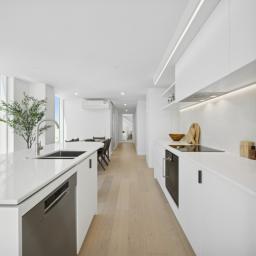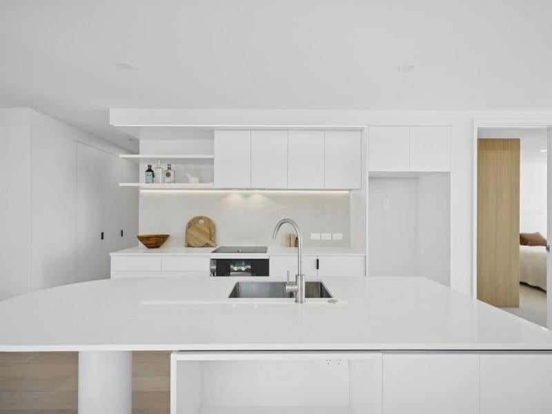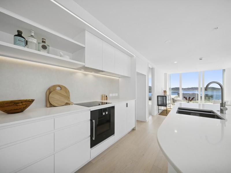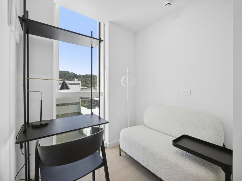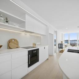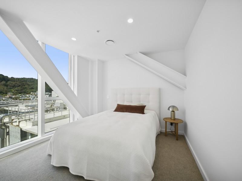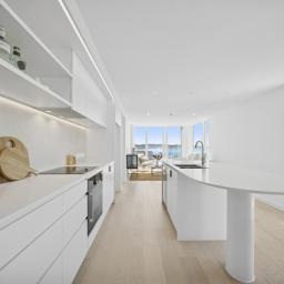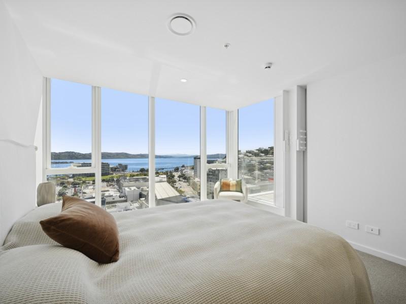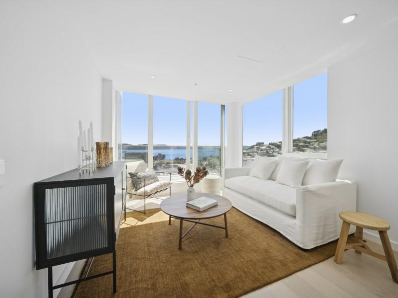 This recently completed penthouse at Hyde Lane has some of the best harbour views in the city! 1102 is positioned on the 11th floor of this high-rise, this design-led penthouse offers sweeping views across Wellington Harbour, Mt Victoria, and the CBD skyline. The open-plan living spaces offer floor-to-ceiling glazing, with natural light flooding into each space, accentuating refined architectural details and premium finishes. This penthouse showcases a light, contemporary palette complemented by natural textures and high-end fittings throughout.
