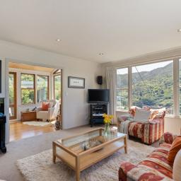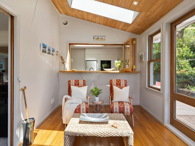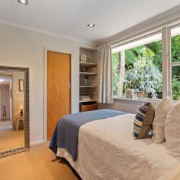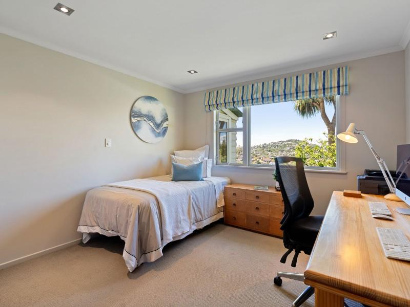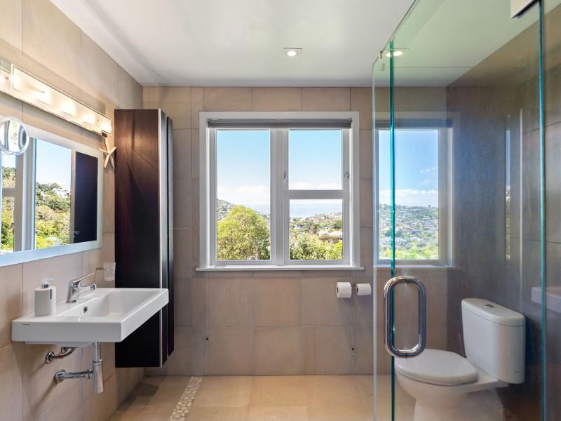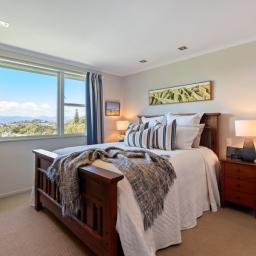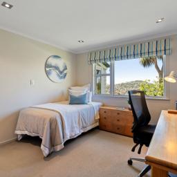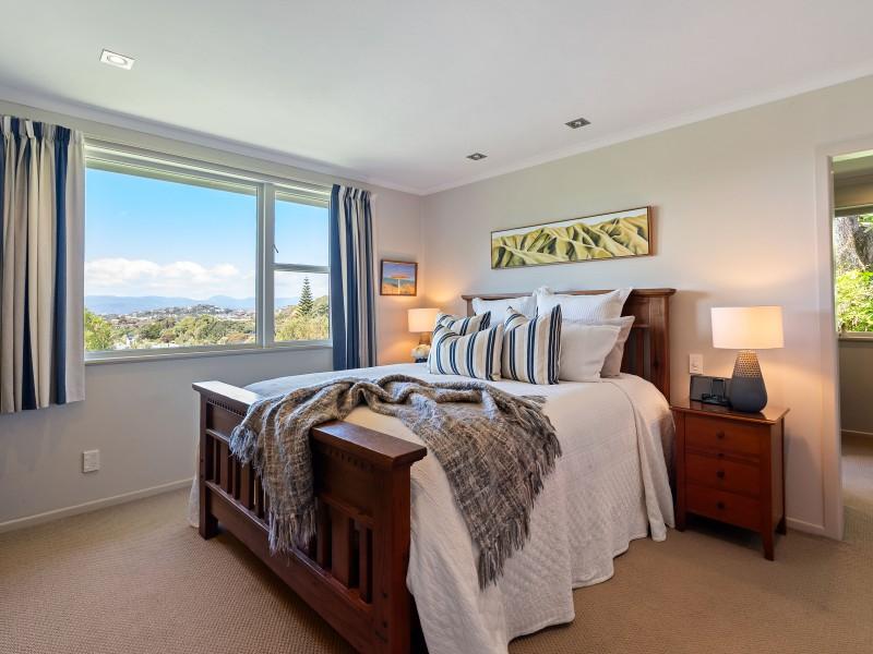Enjoy panoramic north-west views across lush, bush-clad hills with glimpses of the harbour. A tranquil outlook framed by native greenery and birdsong.