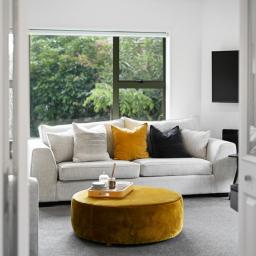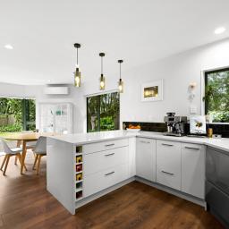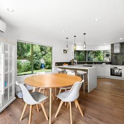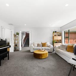Step inside and you'll find two generous living areas - one that can be closed off for quiet relaxation, and the other flowing seamlessly into the open-plan dining area and elegant kitchen. The kitchen is a showpiece, featuring a waterfall-edge stone benchtop with breakfast bar, premium appliances, and a recently added scullery for extra convenience. A downstairs office, guest bedroom, and powder room make everyday living effortless, while the carpeted double garage offers plenty of storage and a well-planned laundry space.