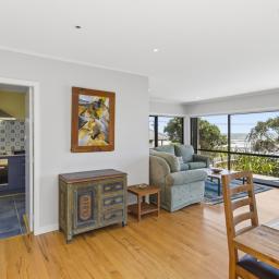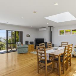Renovated over the years to maximise comfort & warmth, there are two double bedrooms, a modern bathroom, upgraded kitchen & separate laundry. The large open-plan living area, framed by a wall of windows, floods the space with natural light & creates a seamless connection between indoors & out. Polished timber floors, a wood burner, & heat-pump provide warmth & character year-round, while the sunny garden invite relaxed entertaining & effortless beachside living.
