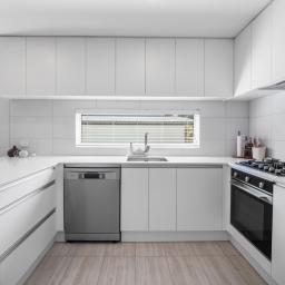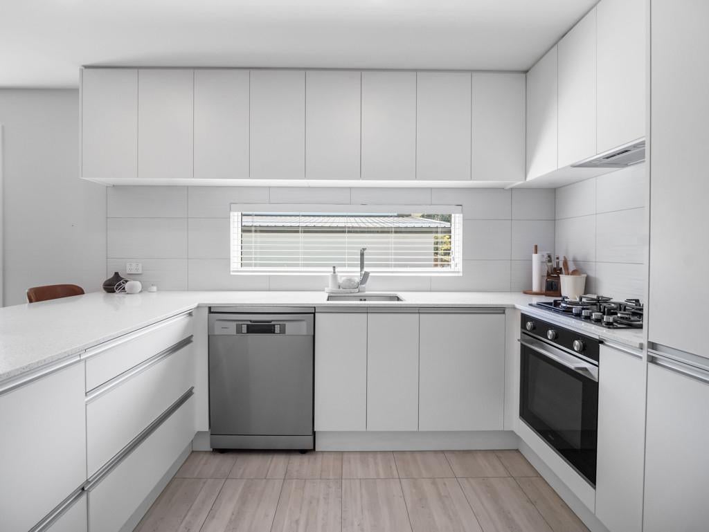 Spacious open-plan living and kitchen, beautifully presented in soft neutral tones. The kitchen has been well designed with ample bench space, gas cooking and quality appliances with the fridge/freezer included and plenty of storage.