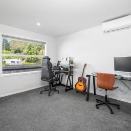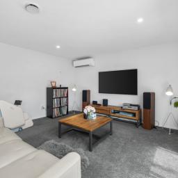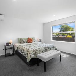 The three double bedrooms ensure generous space for everyone, with the master suite boasting a walk-in wardrobe and an ensuite. The main bathroom offers both a separate bath and shower for family convenience. Comfort is assisted year-round with extensive double glazing, insulation, gas water heating, HRV, and four heat pumps providing effortless climate control in every season.