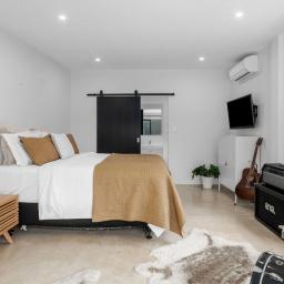 Completed in 2013, the main residence is designed for effortless modern living, with multiple zones that transition from light-filled family areas to a second lounge with an adjoining office nook. The kitchen showcases a contemporary aesthetic with stone and stainless finishes, connecting seamlessly to the open-plan dining and living spaces. Accommodation is headlined in the master suite, where a luxe ensuite and sliders open out onto the spa and pool area. Two additional bedrooms provide ideal accommodation for family or guests, supported by a stylish full bathroom. A separate laundry and expansive linen storage reflect the home's thoughtful design and emphasis on quality, while double internal-access garaging rounds out the generous 210m2 (approx.) layout.