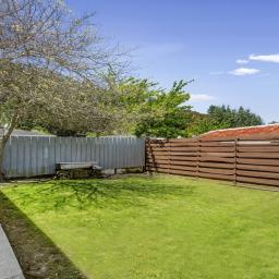 Out back, a level lawn provides room for play - an easy-care, fully usable outdoor space ready to enjoy.