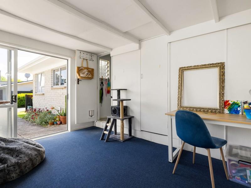 A practical kitchen and dining area offer space to cook, connect, and personalise, while a heat pump ensures year-round comfort. There’s generous storage throughout, plus a sunny courtyard and car parking at the rear.
