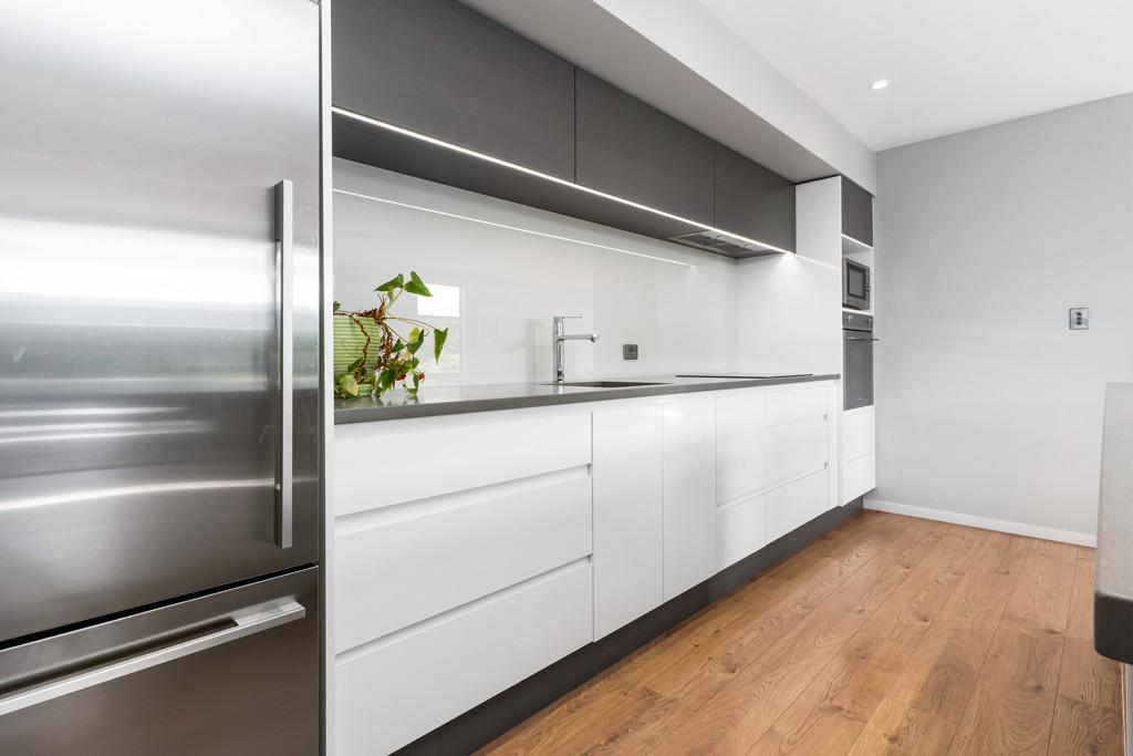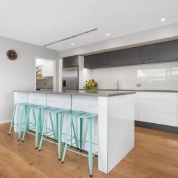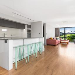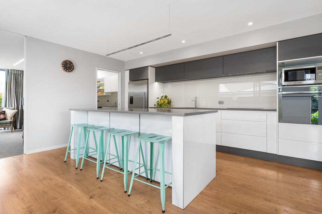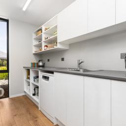 At the heart of the home lies the expansive open-plan kitchen, dining and living area, a vibrant hub made for connection and easy living. The sleek, modern kitchen is a true chefs delight, complete with a generous walk-in pantry and an abundance of cleverly designed storage, ensuring meal preparation is both effortless and enjoyable.