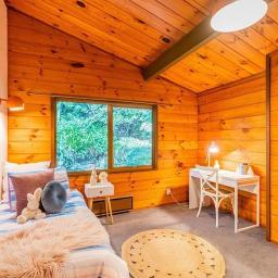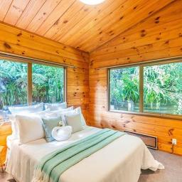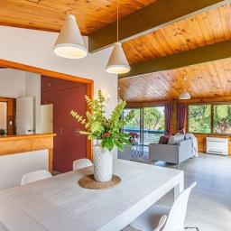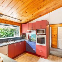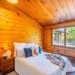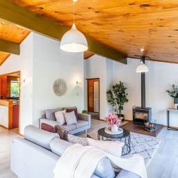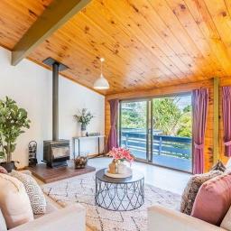 Step inside to discover a warm, timber-lined interior with soaring ceilings and generous open-plan living. The lounge is light and airy, opening to a wraparound deck that’s ideal for relaxing or entertaining. A cosy wood burner and heat pump adds to the charm, making it a welcoming space year-round.