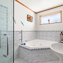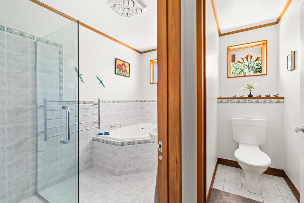 There are three bedrooms in total, enhanced by a family bathroom complete with a tiled shower and a separate bath, plus master with en-suite bathroom. Enjoy comfortable year-round living with double glazing (except garage and front door), heat pump, gas fireplace, heat transfer system and double integral garaging.