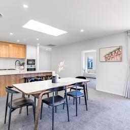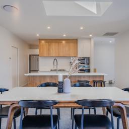Sun-Drenched Dining: The dining area, enhanced by a skylight, is bathed in natural light, creating an inviting atmosphere perfect for family gatherings and entertaining.