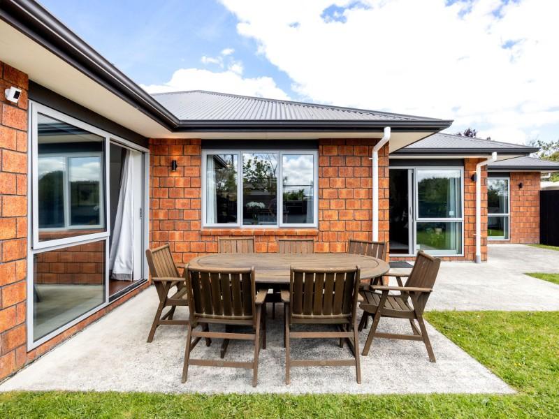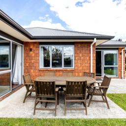 Built in solid brick and spanning approximately 185 sqm, the home features four bedrooms and two bathrooms, providing flexible space for everyday family living. The main living area is warm and inviting, kept comfortable year-round by a heat pump. Large windows bring in natural light while maintaining a sense of privacy, and the living and dining zones connect easily to the kitchen for relaxed, functional flow. A new bathroom and toilet installed in 2023 add fresh appeal, while double glazing throughout enhances warmth, quiet, and energy efficiency. Pre-wiring for an alarm adds extra peace of mind.