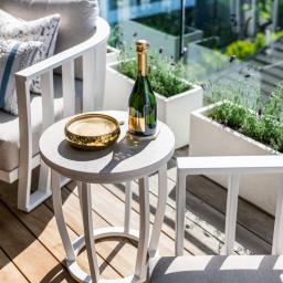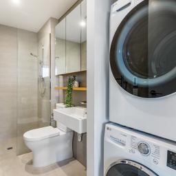Both bedrooms include wardrobes, with the master suite offering a tiled ensuite. The main bathroom combines convenience and style, complete with underfloor heating and an integrated laundry.