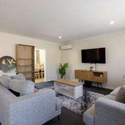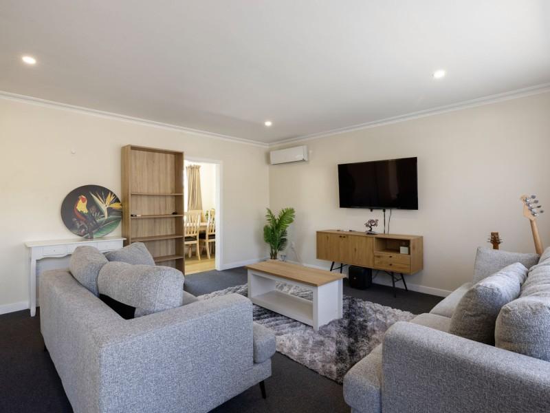 Welcoming lounge with a heat pump, perfect for year-round comfort. Combined kitchen and dining area offers a bright outlook over the backyard. Both bedrooms are generous doubles, while the practical bathroom features a shower over bath.